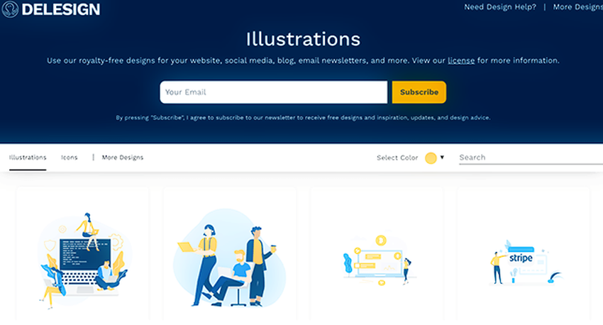 Delesign은 고객에게 무제한 사용자 지정 디자인과 스톱 모션 그래픽을 제공하는 그래픽 디자인 회사입니다. 그리고 최근에는 사용자 지정이 가능한 무료 일러스트레이션 및 템플릿 라이브러리를 만들었습니다.